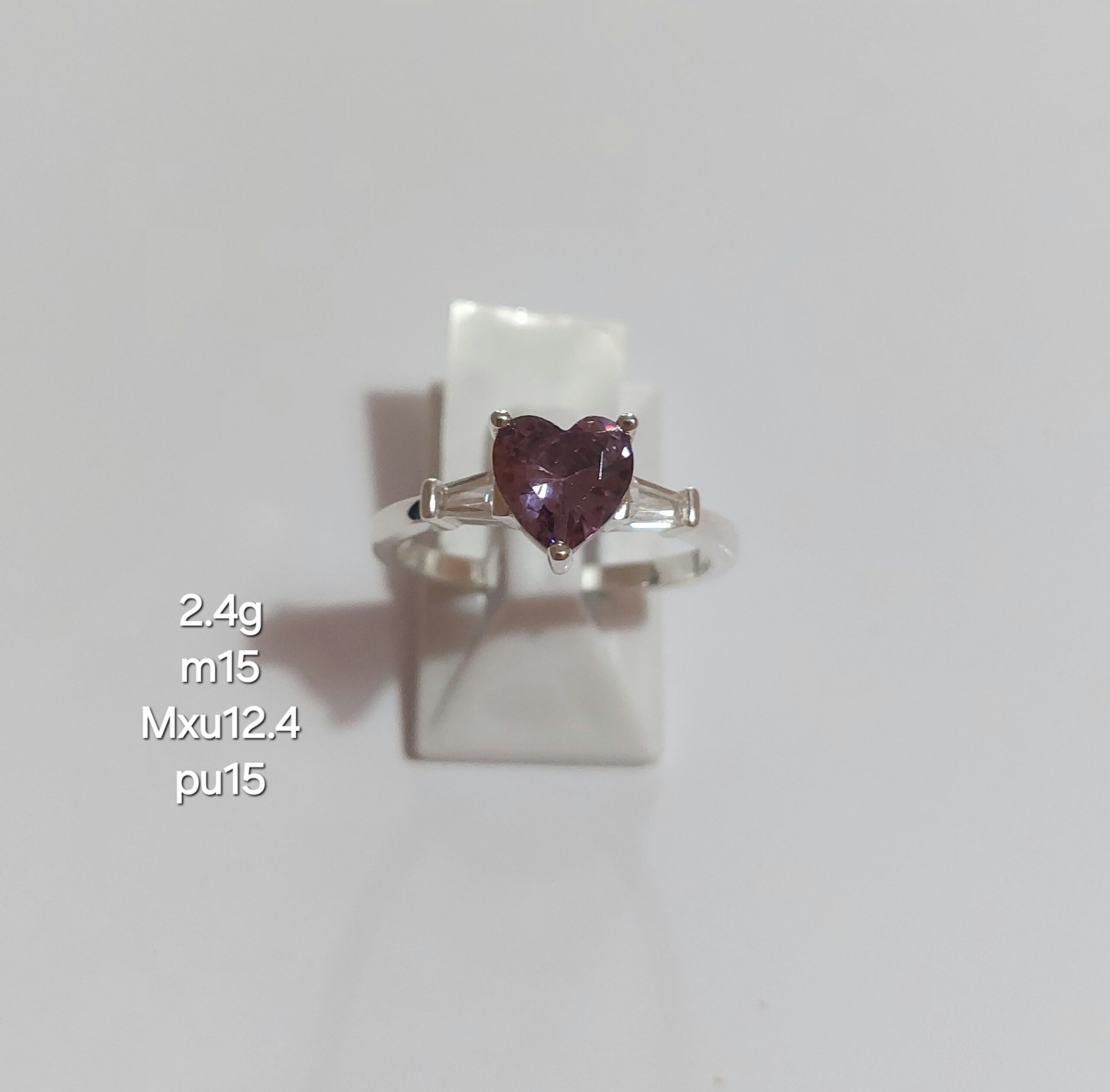 Anillo Corazón Cubic Morado y Blanco (2.4gramos ) Medida 15 / Plata 925 Importada.