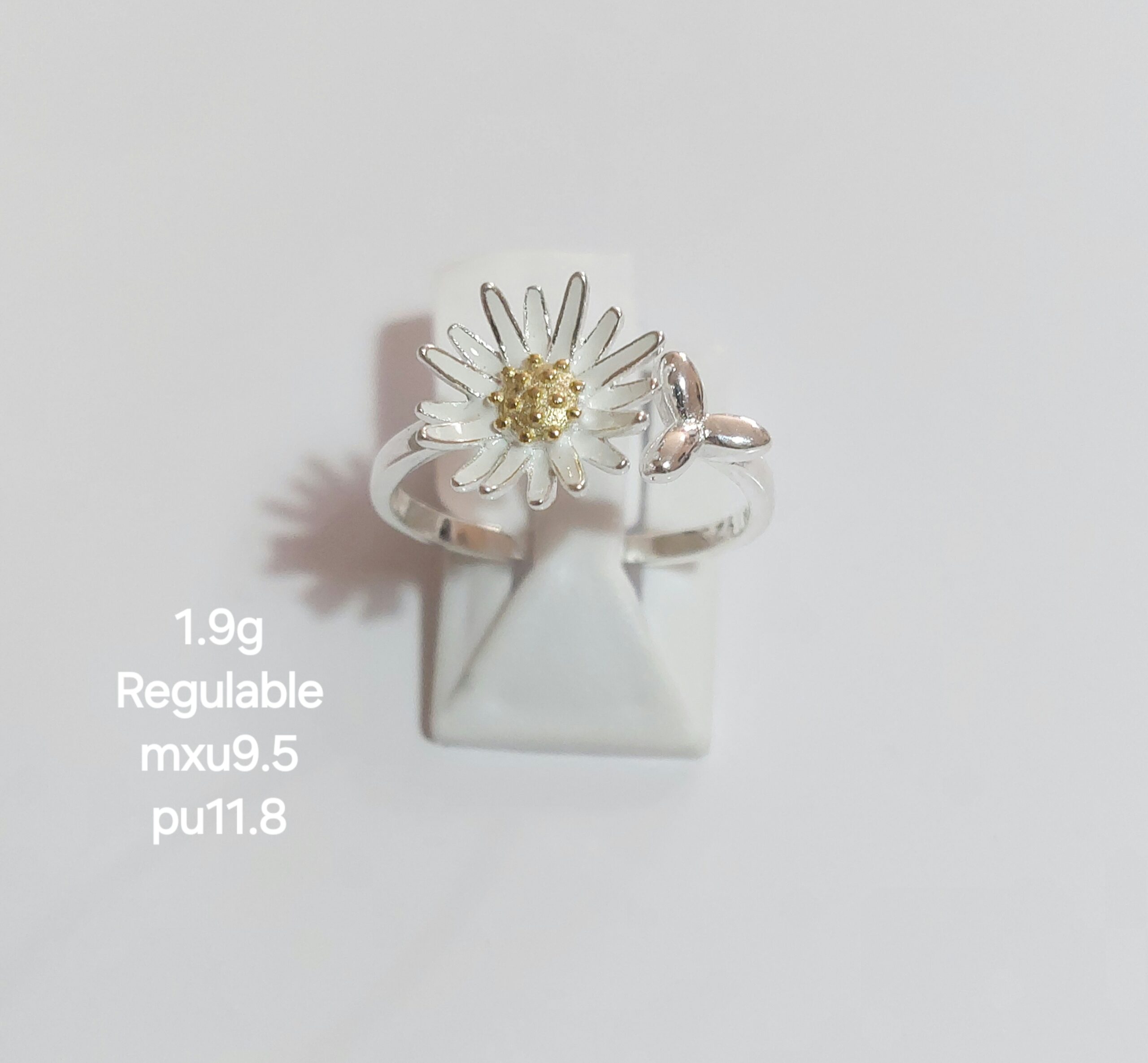Anillo Margarita Regulable medida 12 al 16 (1.9gramos) Plata 925 importada.