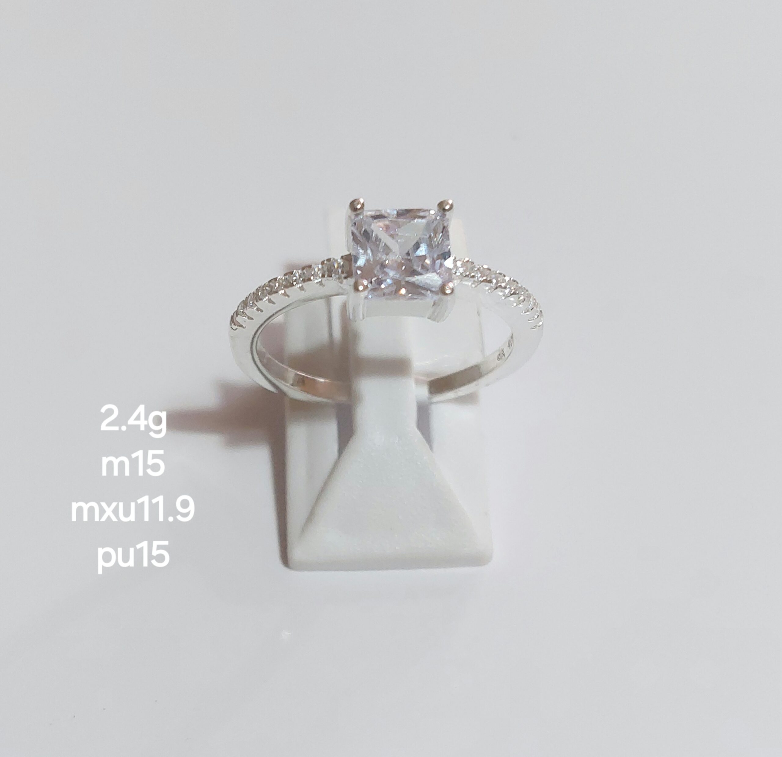 Anillo Cubic Cuadrado con Micropave (2.4 gramos) a Medida 15 / Plata 925 Importada.