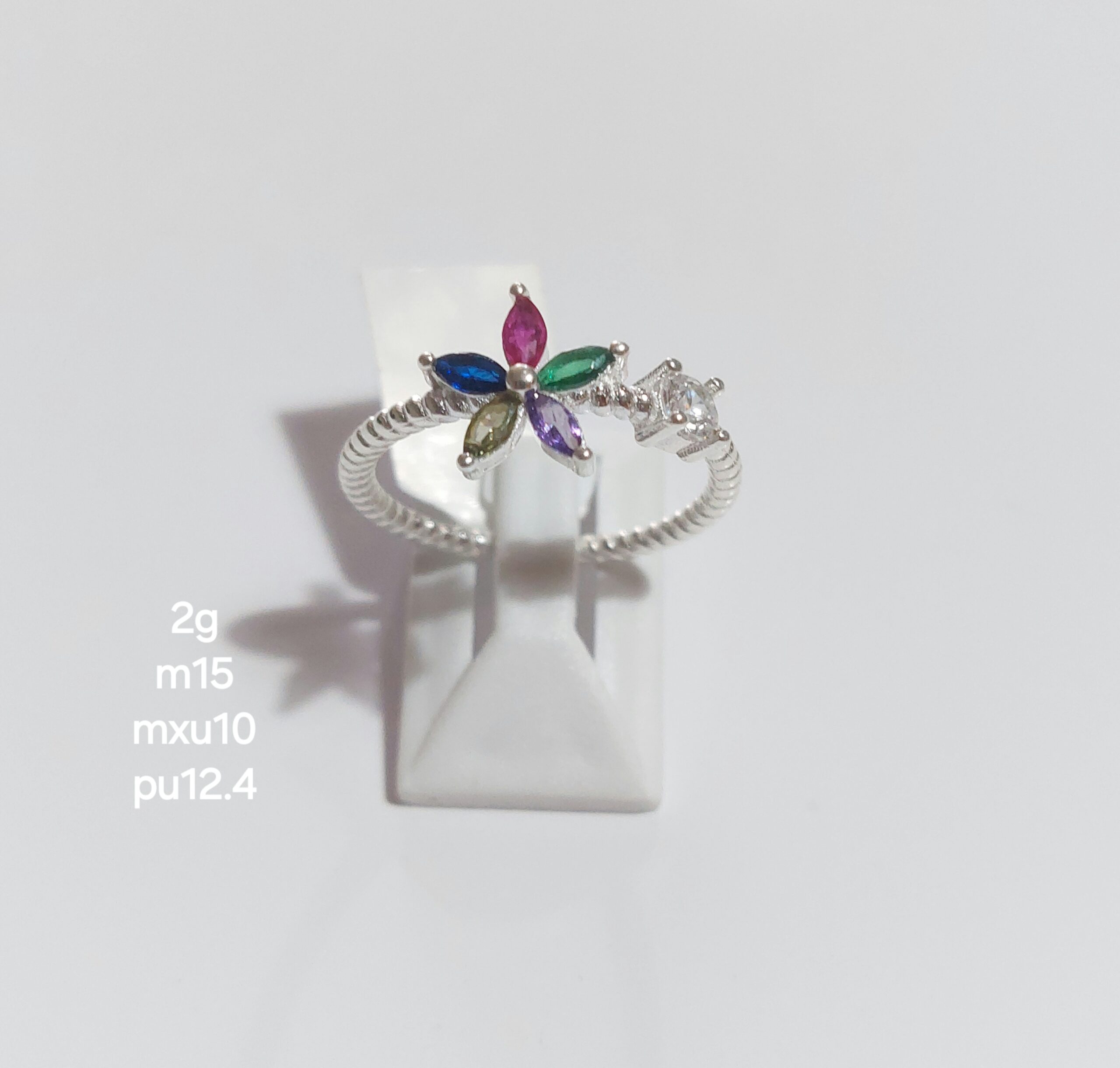 Anillo Flor de Cubics Colores- Blanco (2 gramos ) Medida 15 / Plata 925 Importada