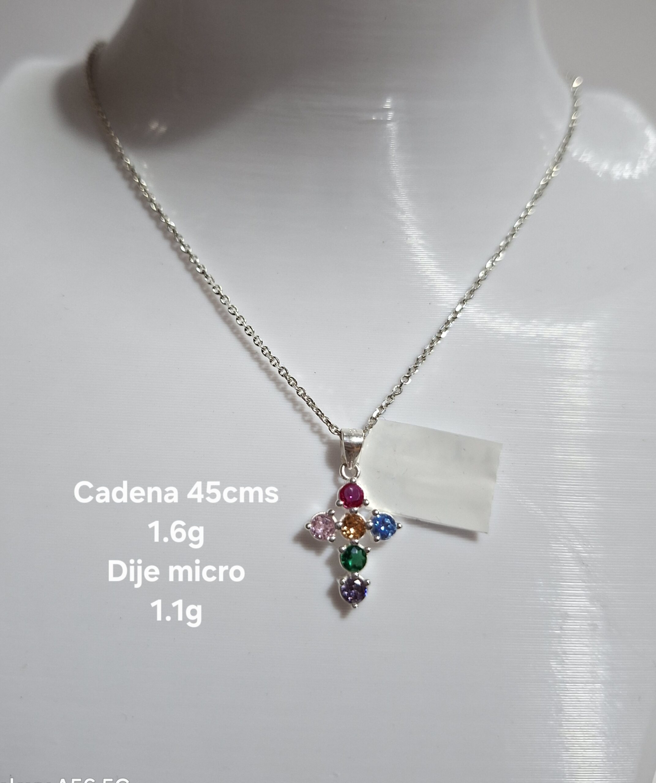 Cadena Forcet / Largo 45 cms (1.6 gramos) + Dije Cruz Colores (1.1gramos)
