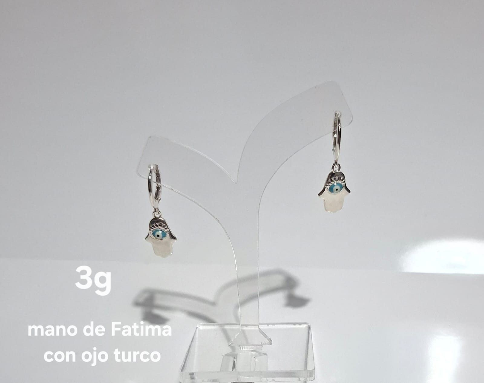 Aros Colgante  Mano de Fatima / Ojo Turco (3 gramos) Plata 925