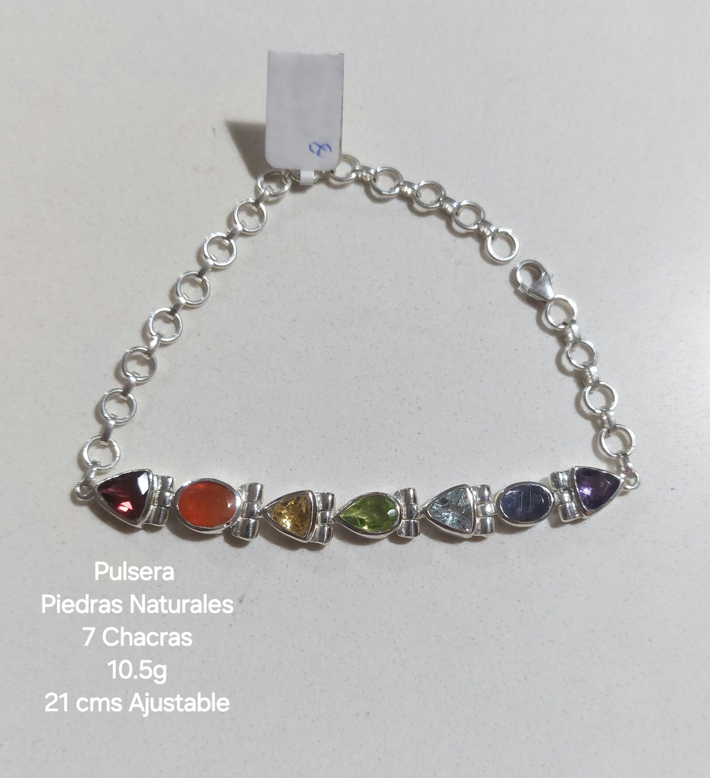 Pulsera 7 Chacras /PIEDRAS NATURLES/ Plata 925 Importada / 10.5 Gramos/ Largo 21 cms  Ajustable