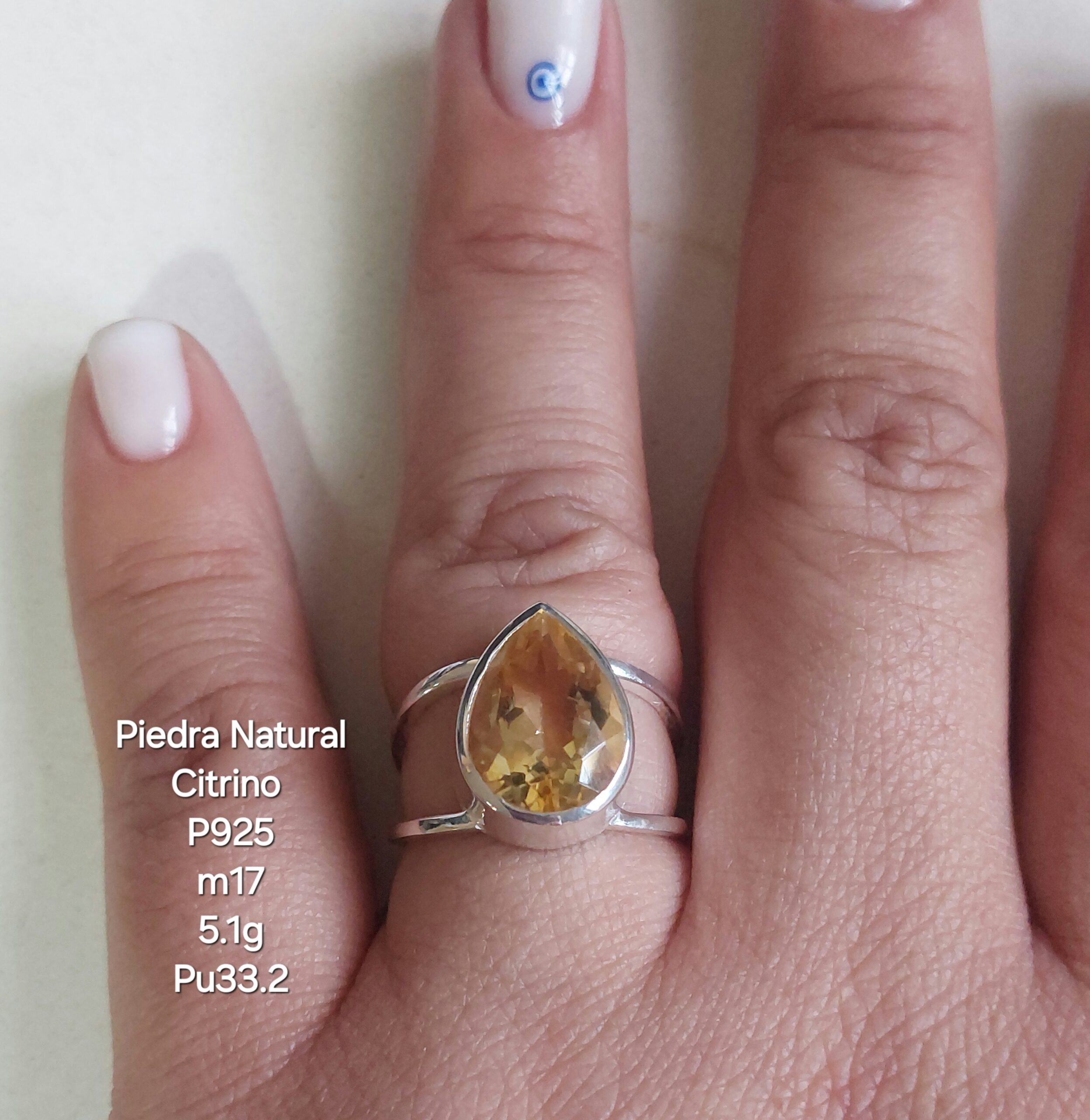 Anillo Piedra Natural Citrino / Medida 17(5.1Gramos) Plata 925 I mportada
