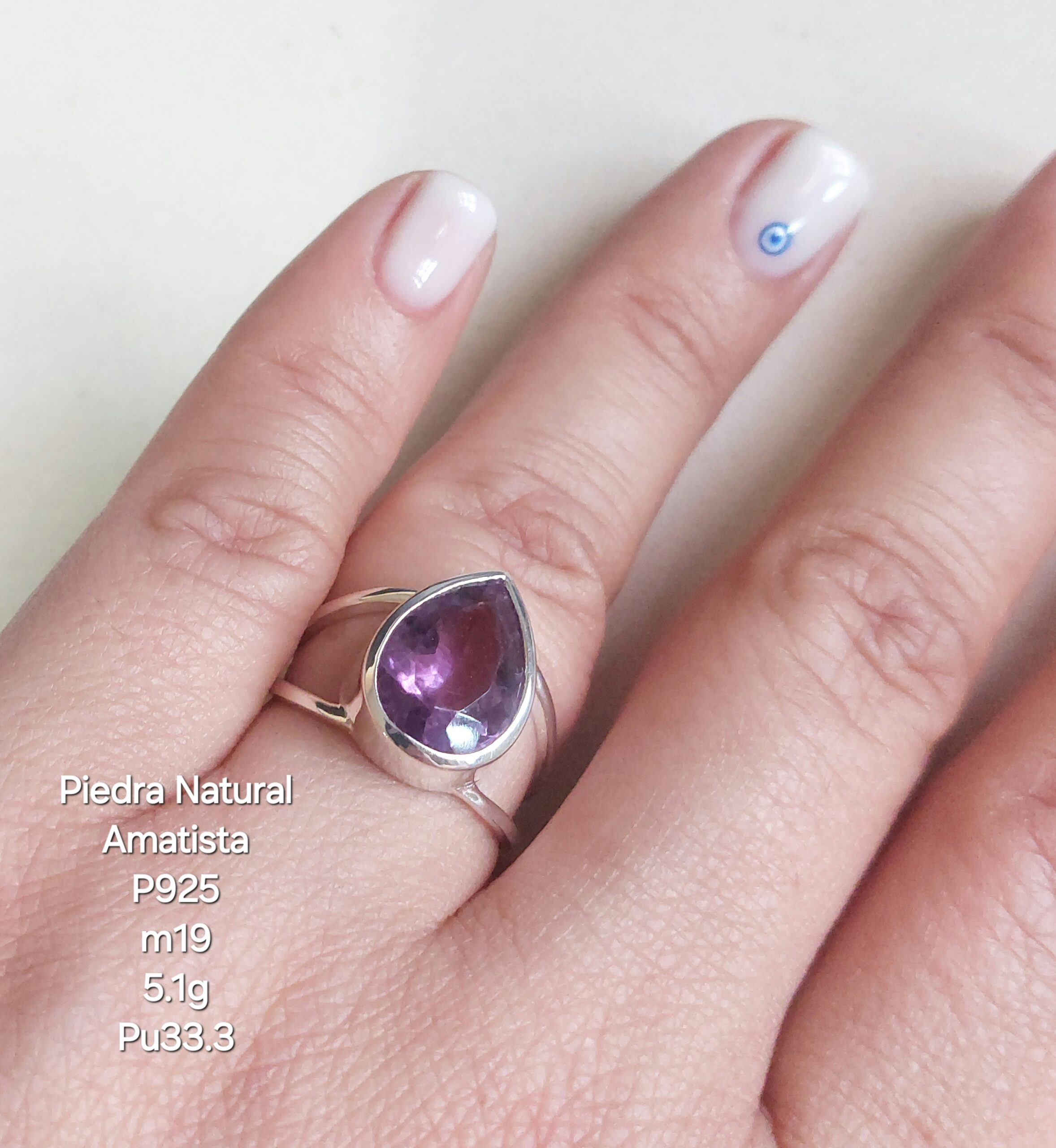 Anillo Piedra Natural Amatista (5.1 gramos) / Medida 19/ Plata 925 Importada
