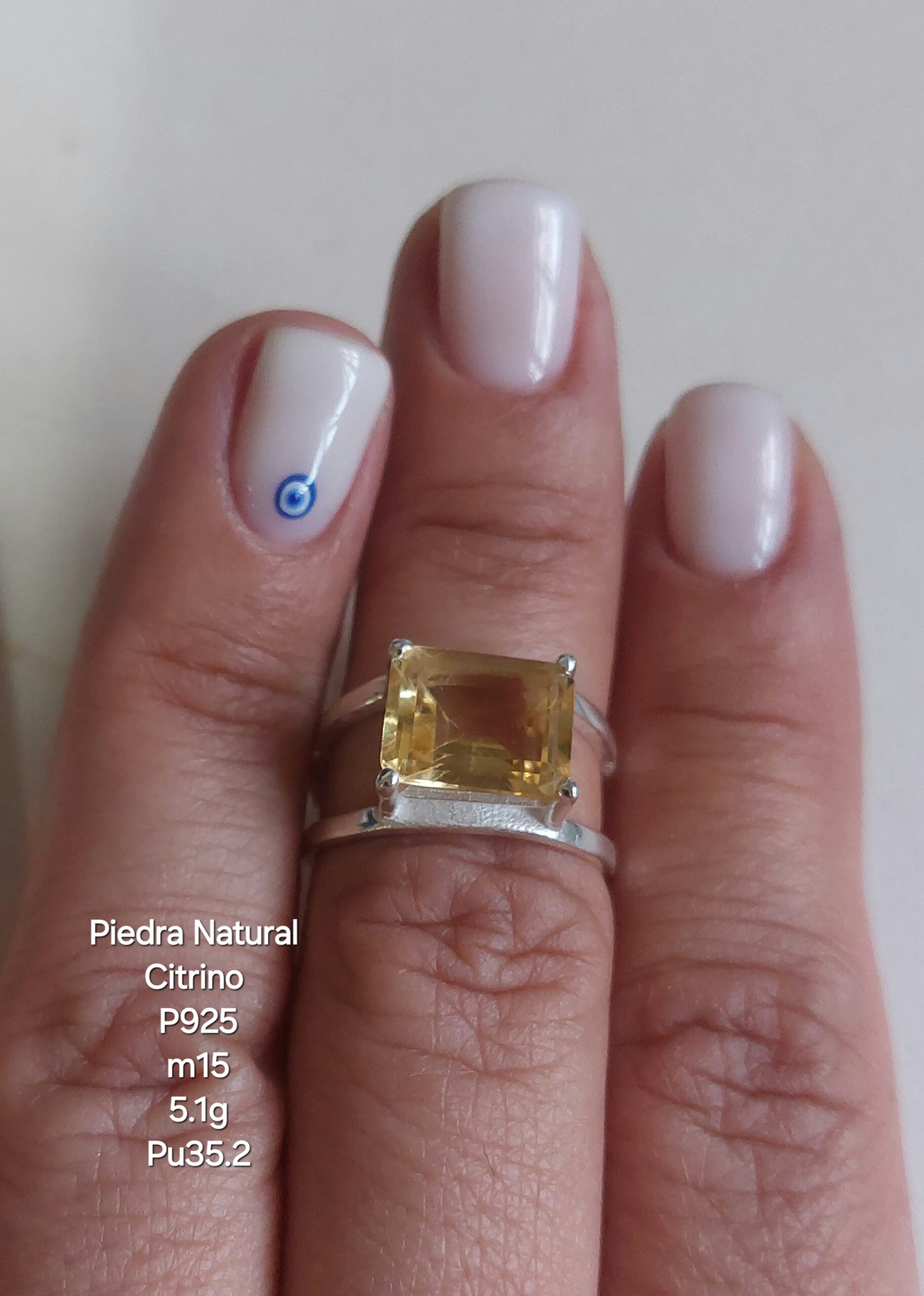 Anillo Piedra Natural Citrino (5.1 Gramos) Medida 15 / Plata 925 Importada