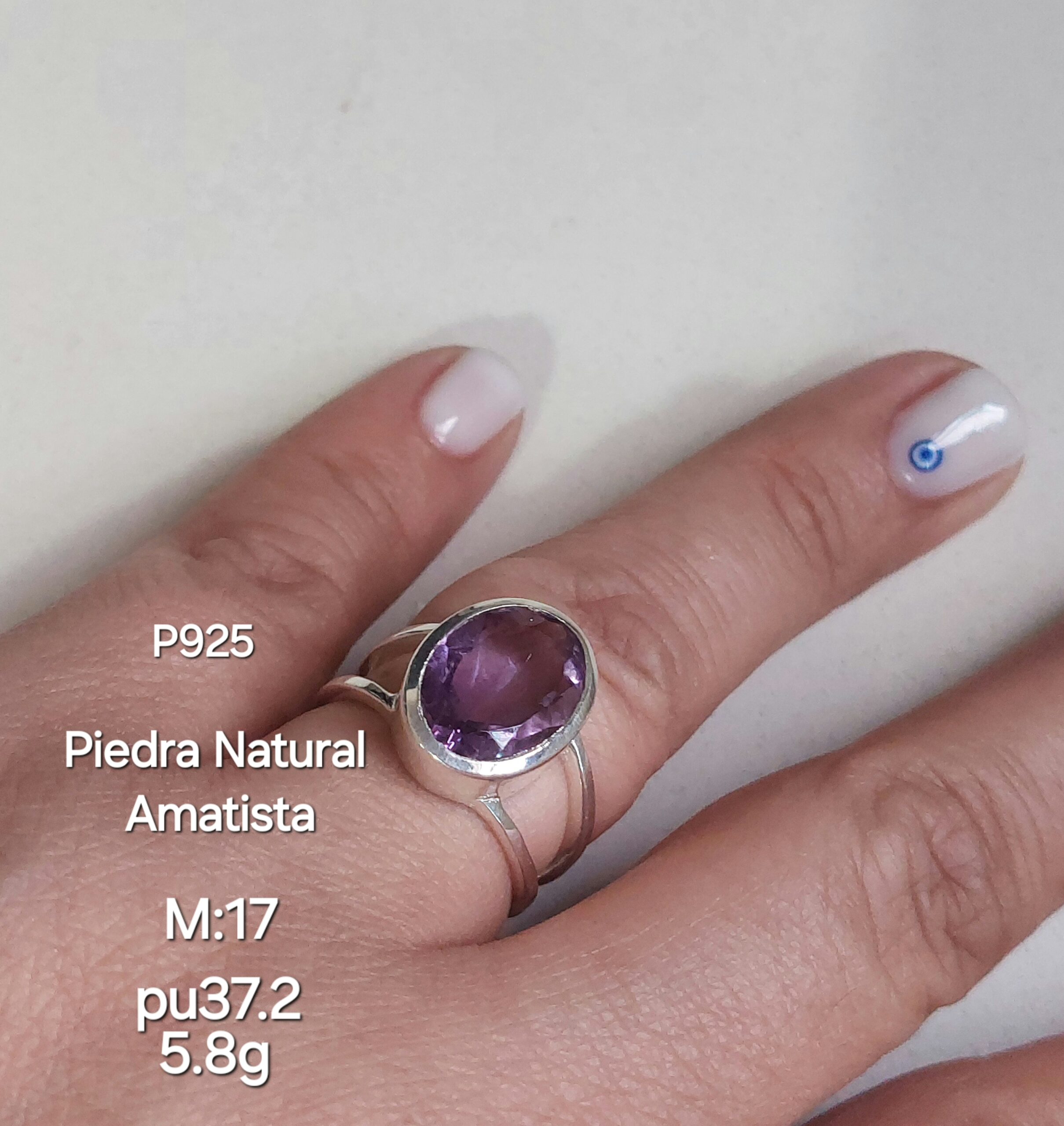 Anillo Piedra Natural Amatista (5.8 Gramos) Medida 17 / Plata 925 Importada