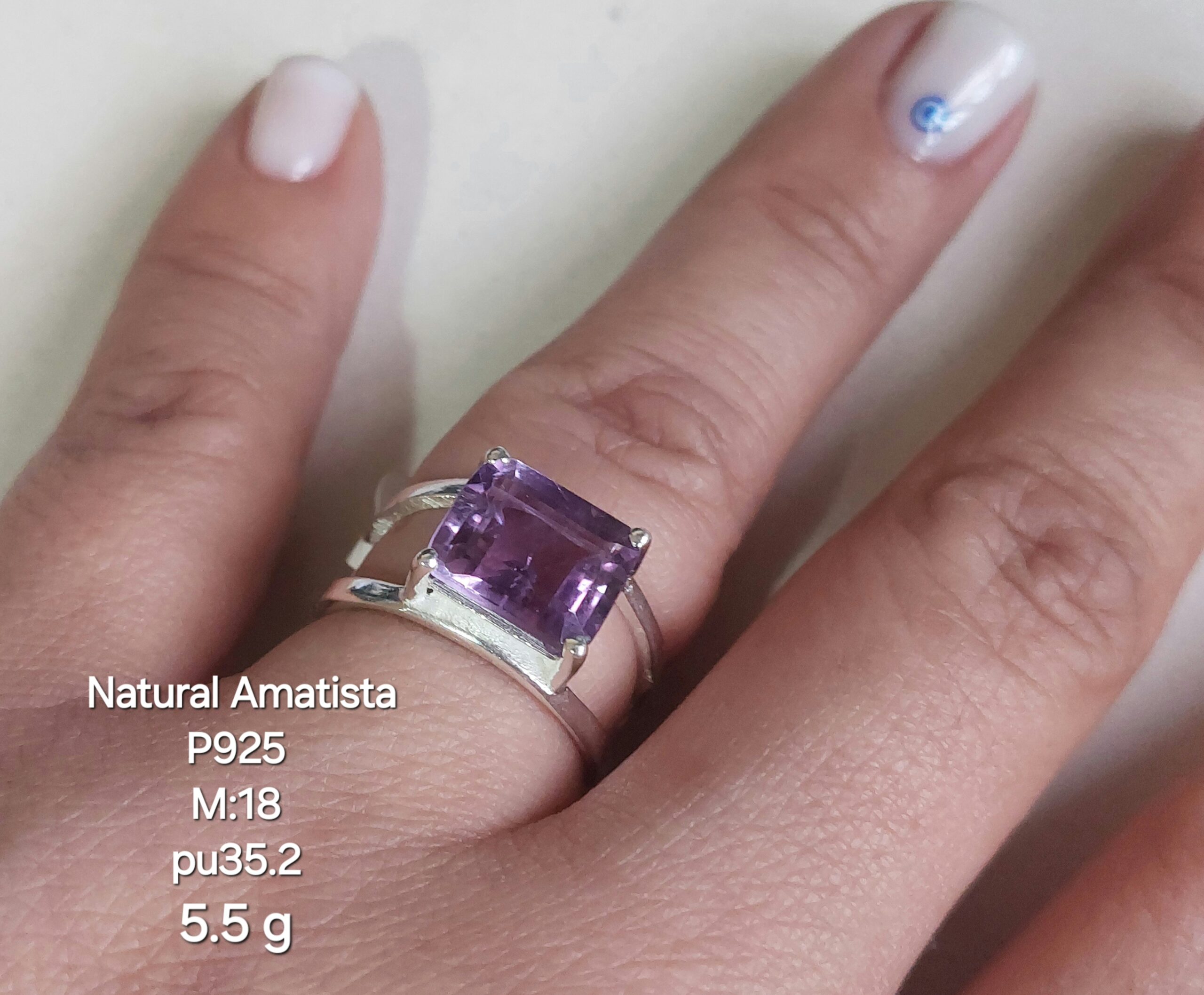 Anillo Piedra Natural Amatista (5.5Gramos ) Medida 18 / Plata 925 Importada