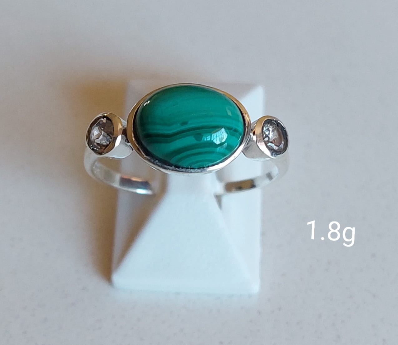 Anillo Piedra Natural Malaquita (2.3 Gramos) Medida17/ Plata 925 Importada